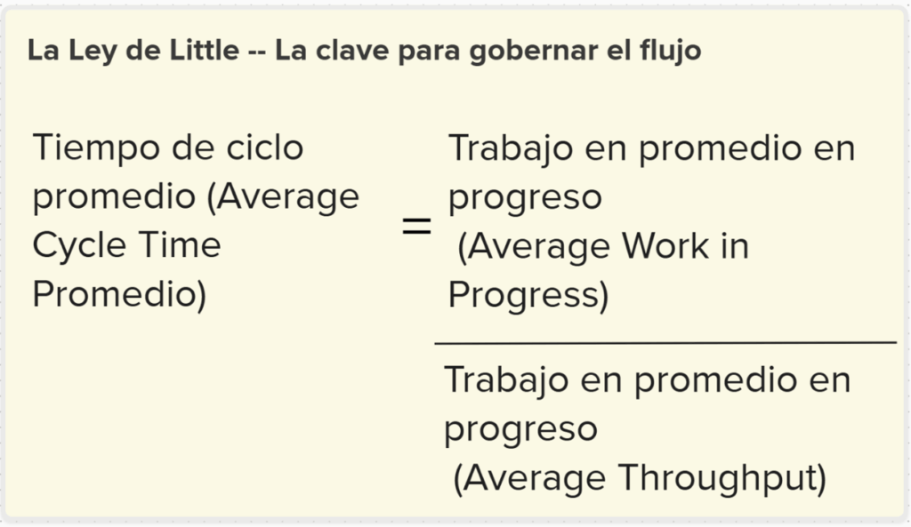 Un principio clave que gobierna la teoría del flujo es la Ley de Little, una directriz que establece la siguiente relación: